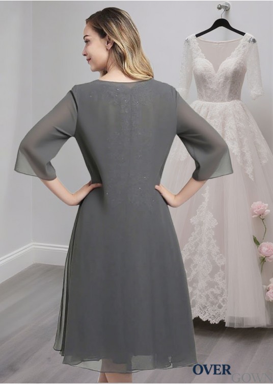 Lace Embroidered Chiffon A-Line Mother of the Bride Dress with Beads