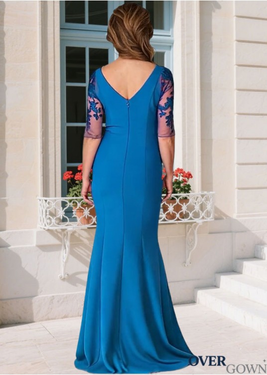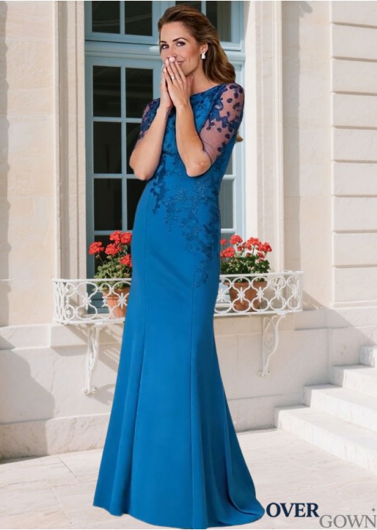 Illusion Sleeve Column Mother of the Bride Gown Blue