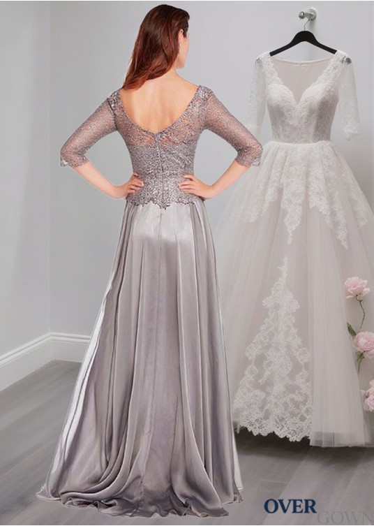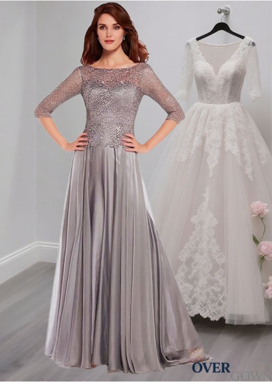 Elegant Lace & Silk A Line Mother of the Bride Dress with Illusion Sleeves