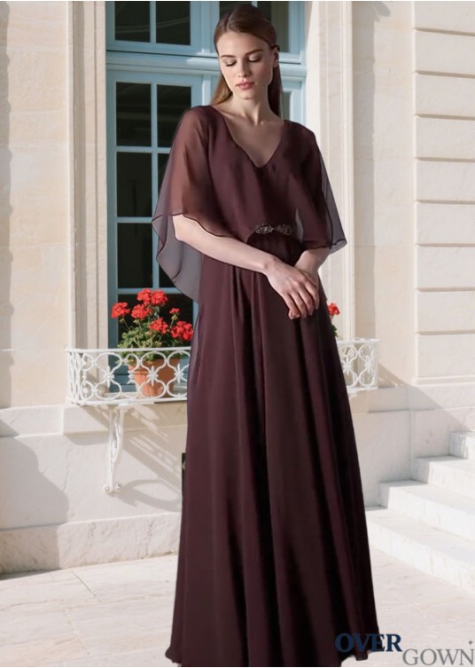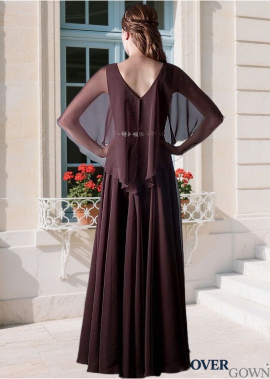 Elegant Chiffon V-Neck A-Line Mother of the Bride Dress – Full Length Gown