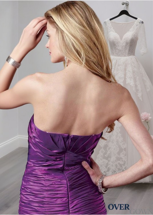 Purple Taffeta Sweetheart Neck Mother of the Bride Dress with Jacket – Knee Length