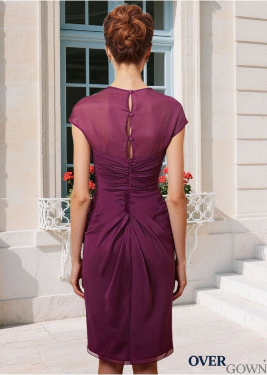 Queen Anne Neckline Cap Sleeve Silk Chiffon Knee-Length Mother Dress