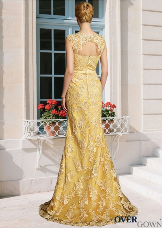 Blue Lace V-Neck Evening Mother of the Bride Dress For Wedding