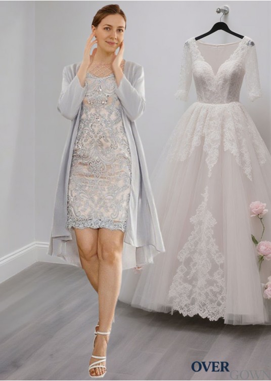 Short 3/4 Sleeves Mother of the Bride Outfit with Jacket and Appliques