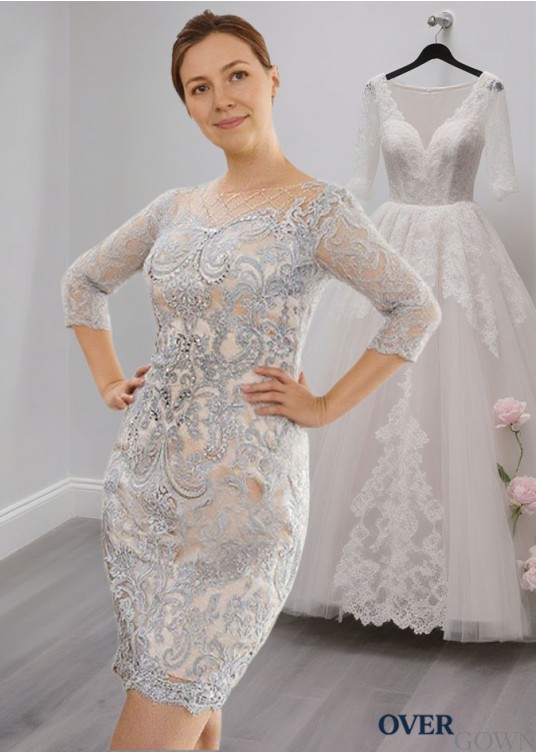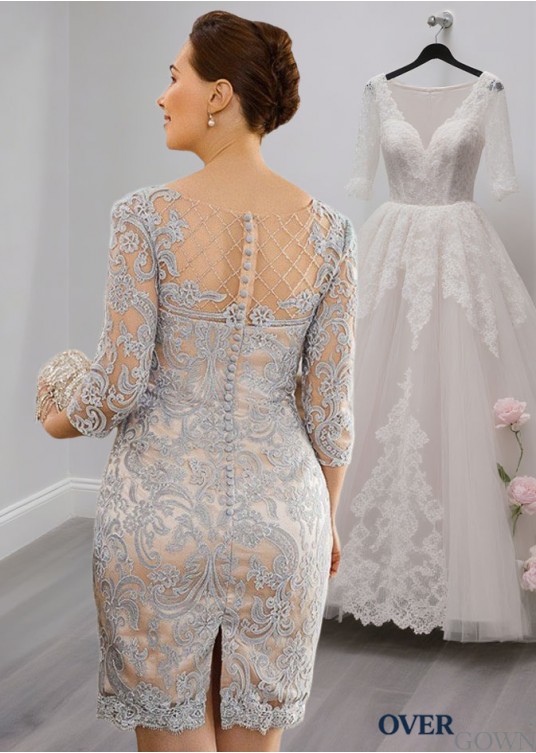 Tea-Length Lace Mother of the Bride Dress with 3/4 Sleeves