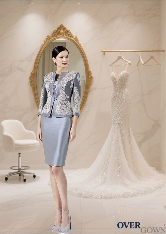 Elegant Short Taffeta Mother of the Bride Dress with Coat Jacket Sleeves and Jewel Neckline