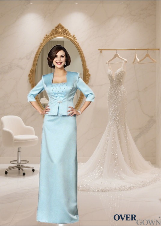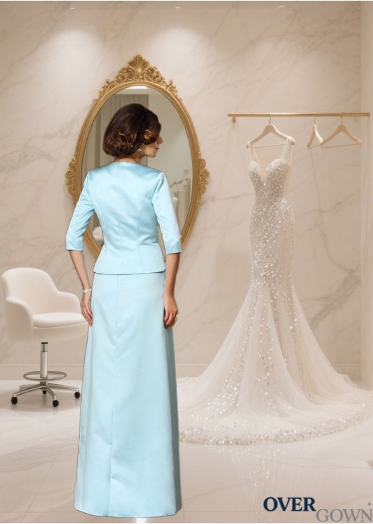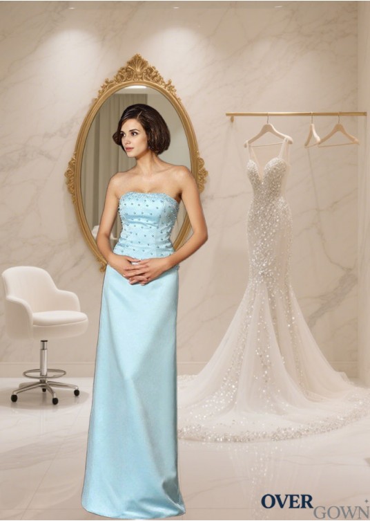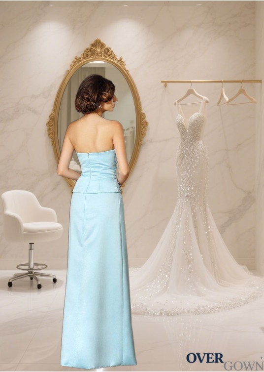 Strapless Satin Floor-Length Sheath Mother of the Bride Dress with Empire Waist