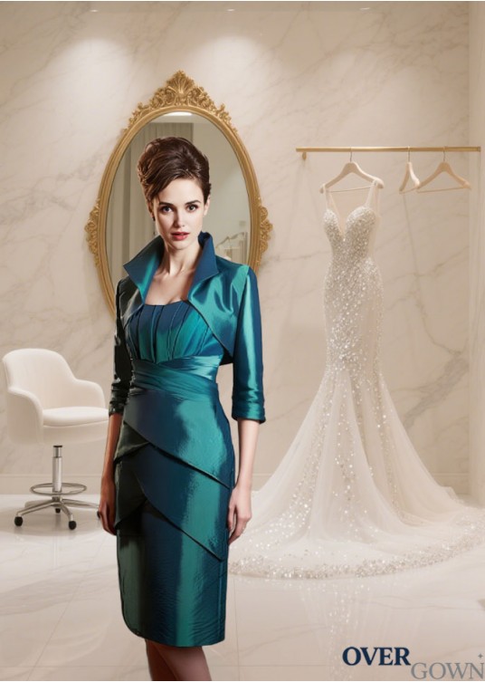 Strapless Taffeta Mother of the Bride Dress with Jacket – Knee Length Sheath Silhouette