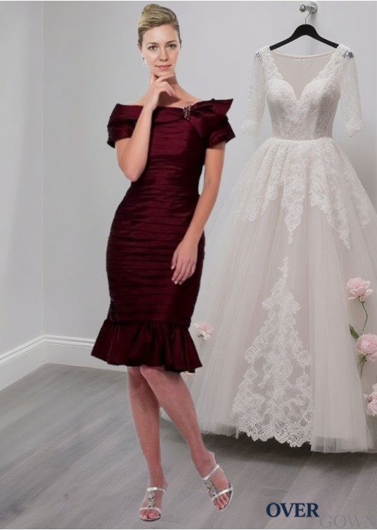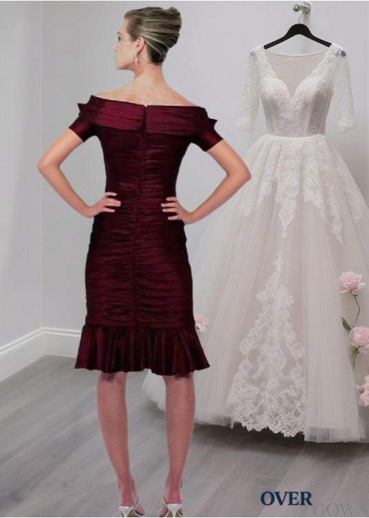 Taffeta Off-the-Shoulder Mother of the Bride Dress – Knee Length Mini Dress