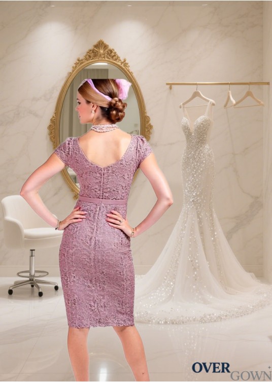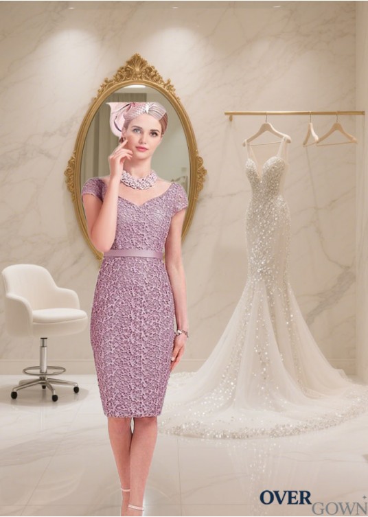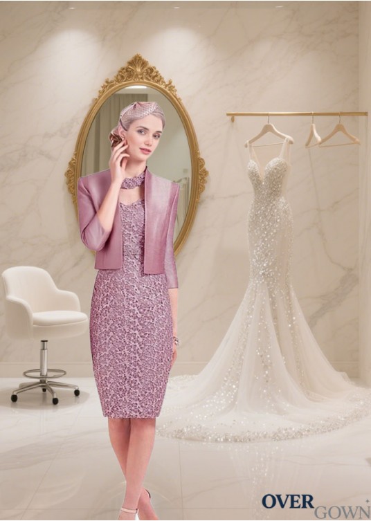V-Neck Lace Mother of the Bride Dress with Jacket – Knee-Length Sheath Style
