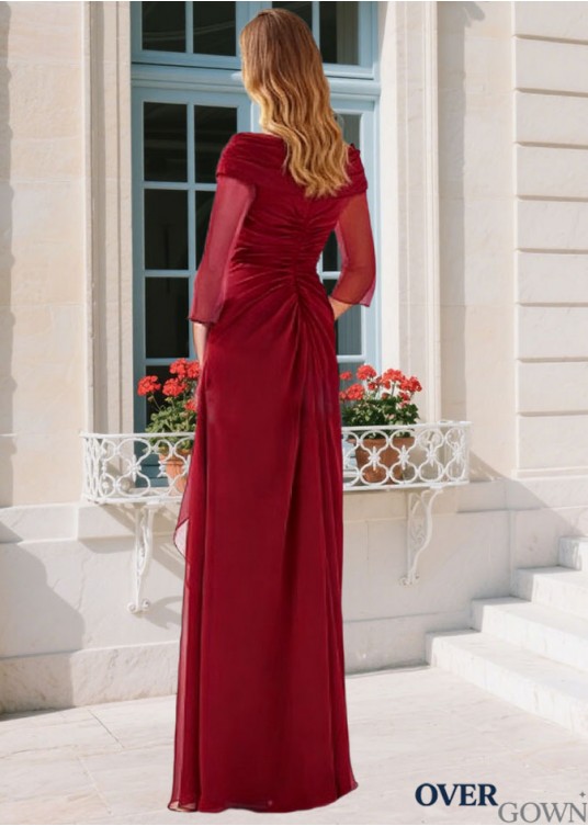 Off-Shoulder Illusion Sleeve Red Chiffon A-line Full Mother Dress
