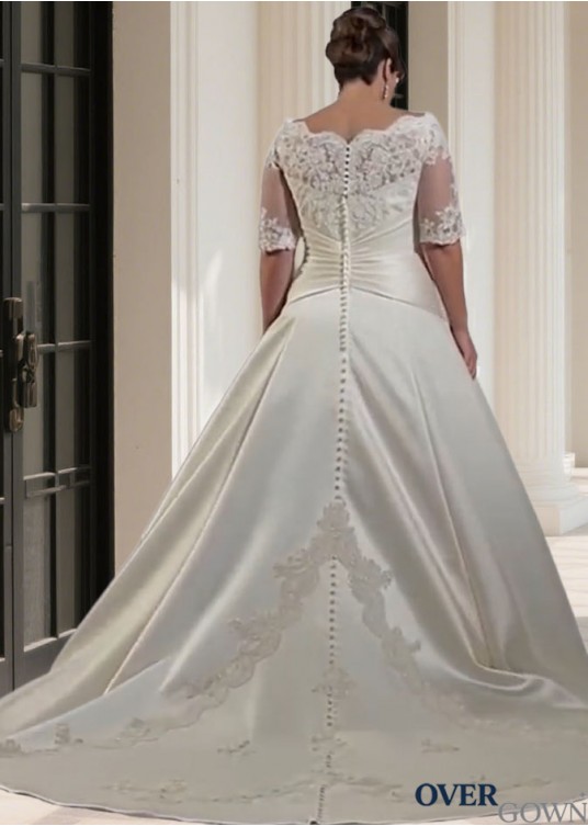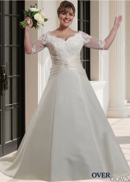Off-the-Shoulder Plus Size A-Line Bridal Gown with 3/4 Illusion Sleeves