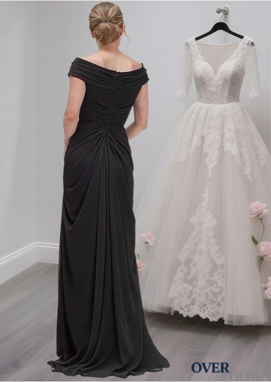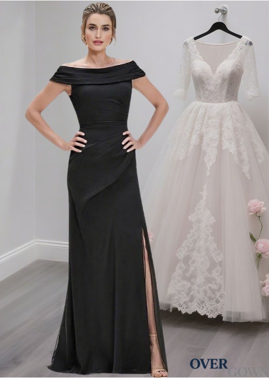 Off the Shoulder Black Chiffon Formal Evening Dress – Full Length Gowns