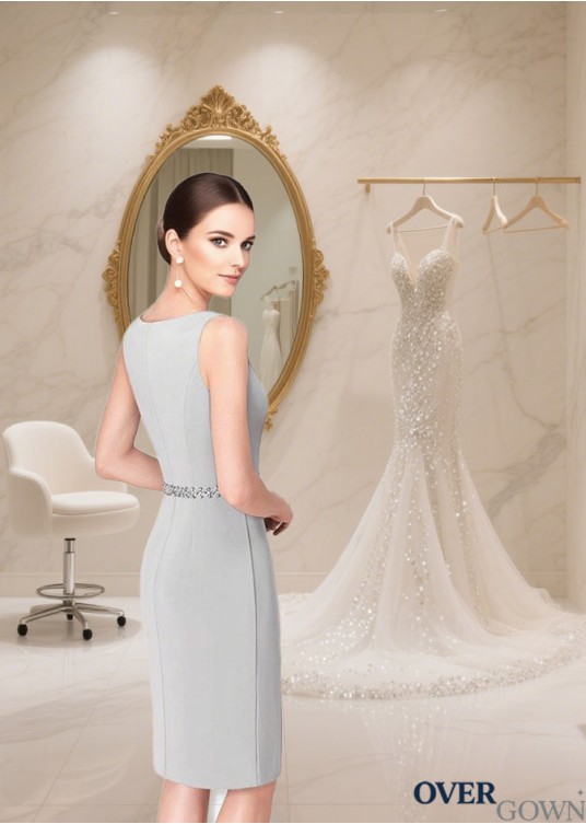 Best Sleeveless Knee-Length Satin Formal Dress V Neck For Party