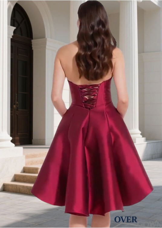 Short Prom Dress – Satin Strapless Hi-Lo A Line Wedding Party Gowns