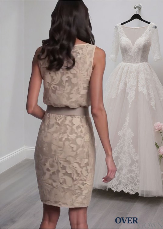 Short Lace Satin Mother of the Bride Dress – Scoop Neck Sheath Mini Formal Gown