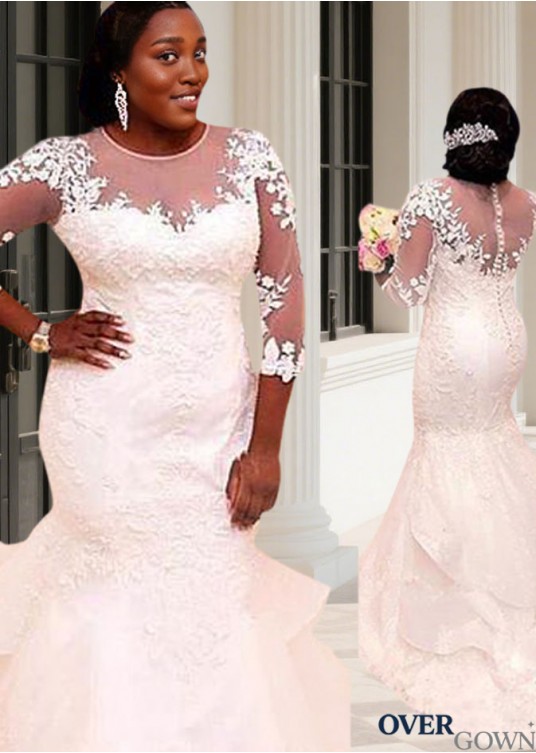 Jewel Neck Illusion Sleeve Plus Size Bridal Gown