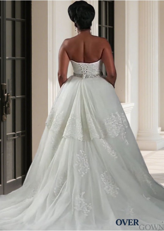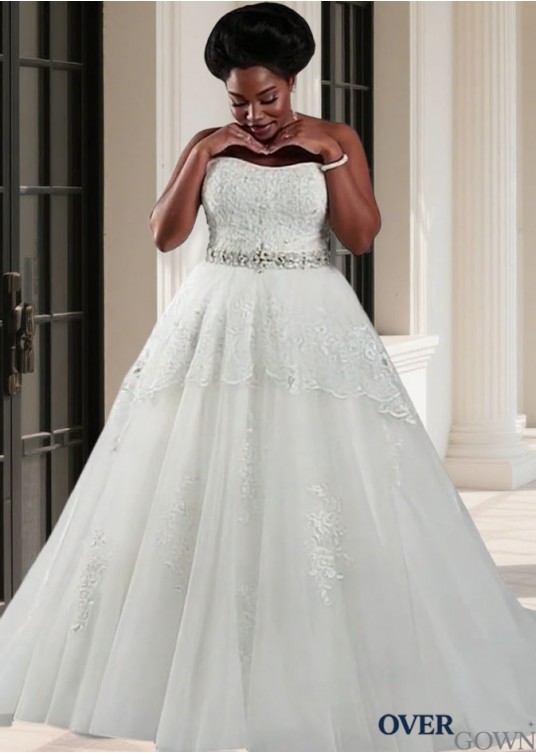 Full-Length Chapel Train Tulle Bridal Gown Plus Size