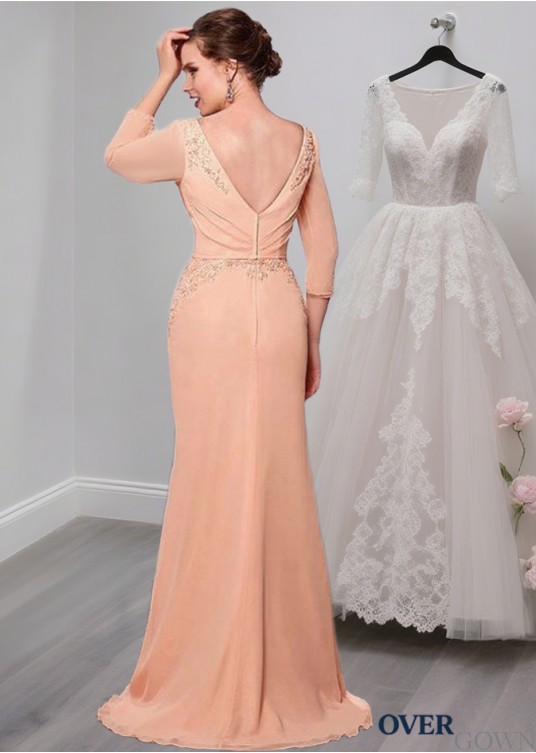 Prom Chiffon V Neck A Line Mother of the Bride Dress with Long Sleeves