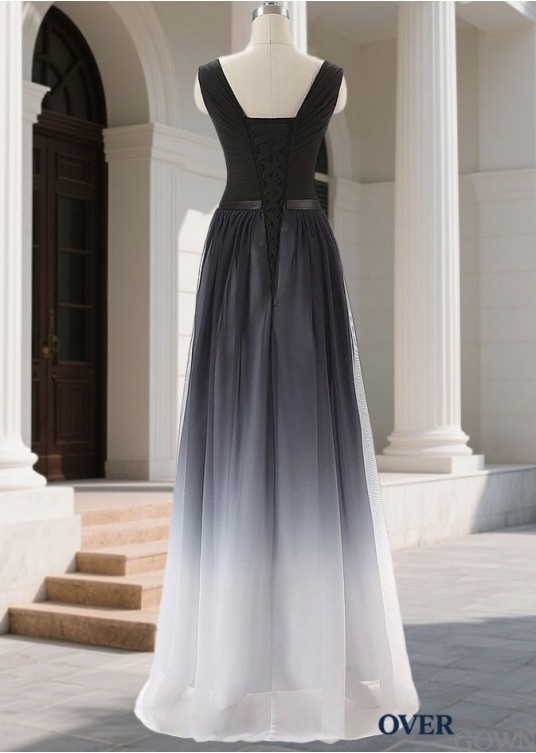 Chiffon Women Evening Dress – Long A Line V Neck Formal Gown