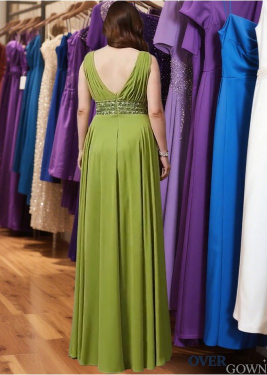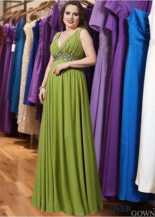 Plus Size Floor-Length Chiffon Prom Evening Dress with Rhinestone Straps