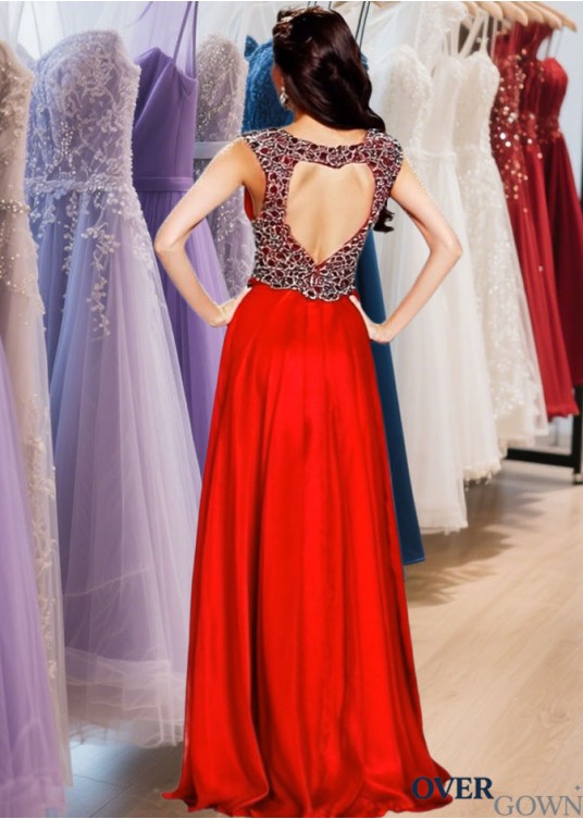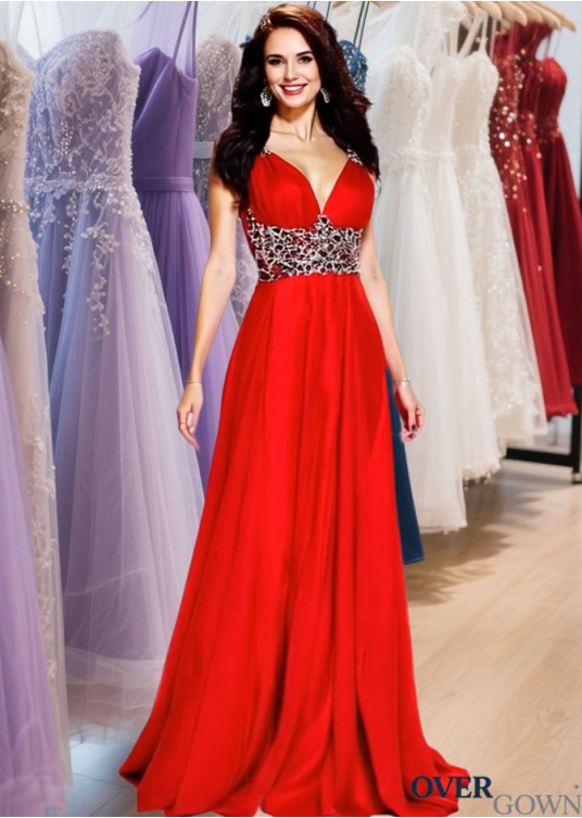 Red V-Neck Chiffon Prom Dress – Floor Length A Line Prom Gown