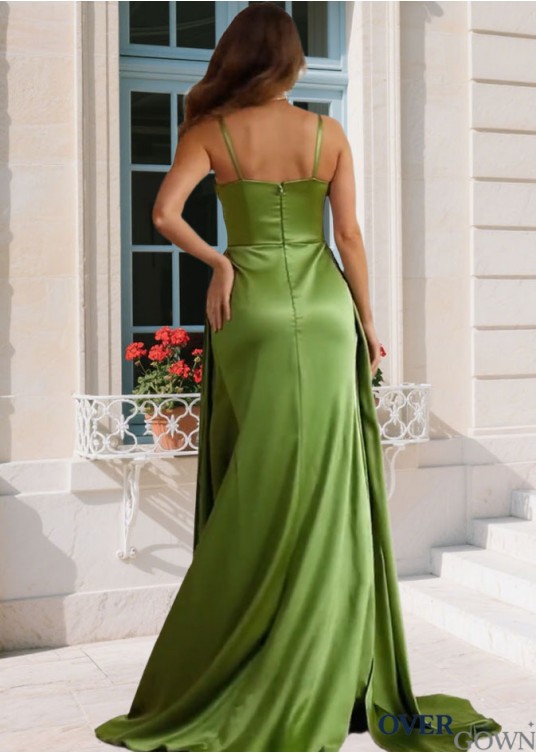 Elegant Satin V-Neck Ruched Prom Dress with Slit – Sleeveless Floor Length Gown