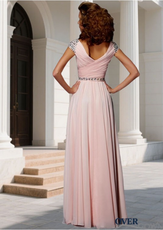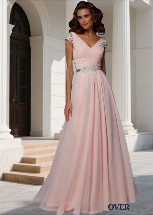 V-Neck Prom Evening Dress – Ruffle A Line Gown with Cap Sleeves