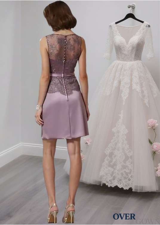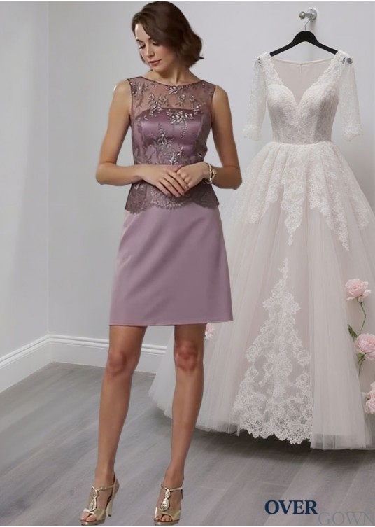 Purple Lace Chiffon Short Mother of the Bride Dress with Jewel Neckline