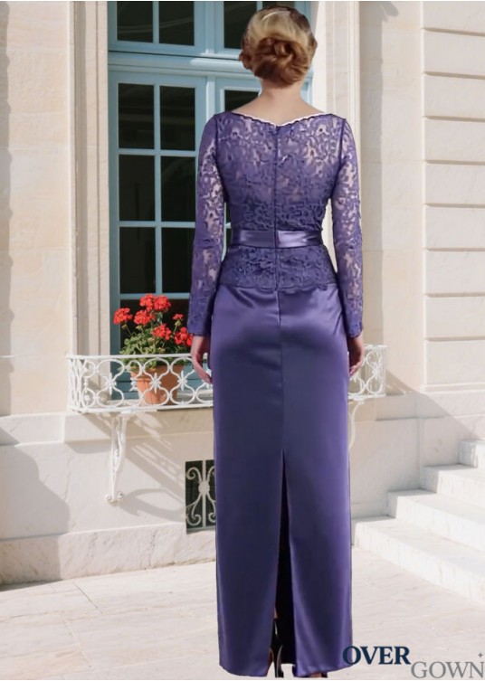 Elegant Purple Taffeta & Lace Mother of the Bride Dress – Jewel Neck Sheath Gown with Illusion Sleeves