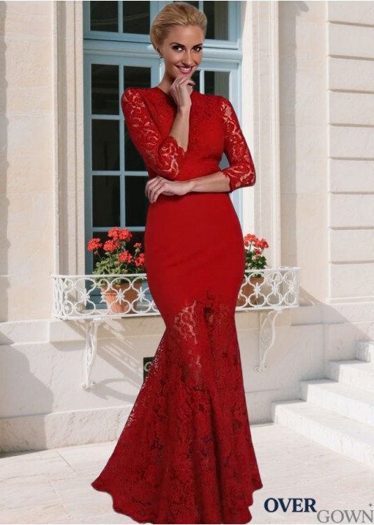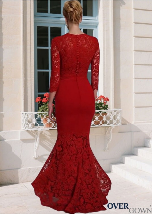 Red Lace Tulle Full Length Mother of the Bride Gown