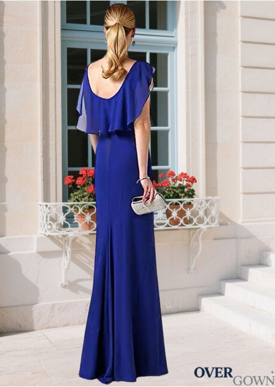 Bateau Neckline Blue Chiffon Sheath Full Length Mother Dress