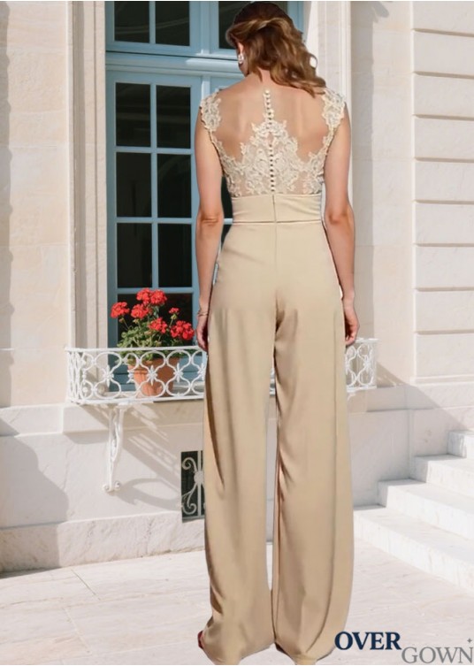 Elegant Satin & Tulle Scoop Neck Full Length Formal Pantsuits
