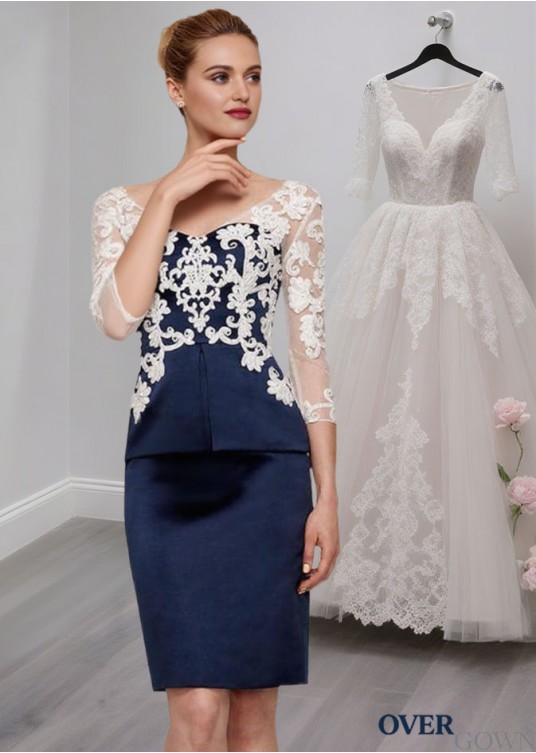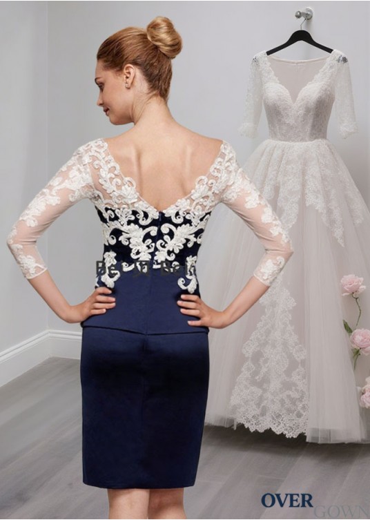 V-Neck Knee-Length Mother of the Bride Dress with 3/4 Sleeves and Applique