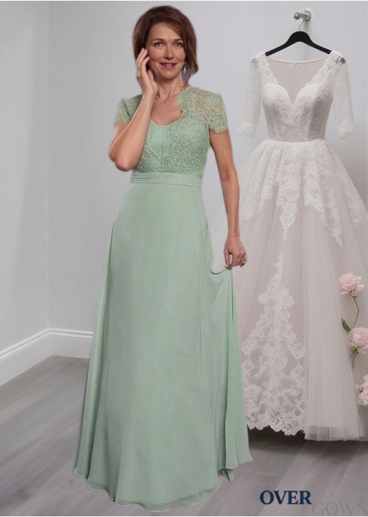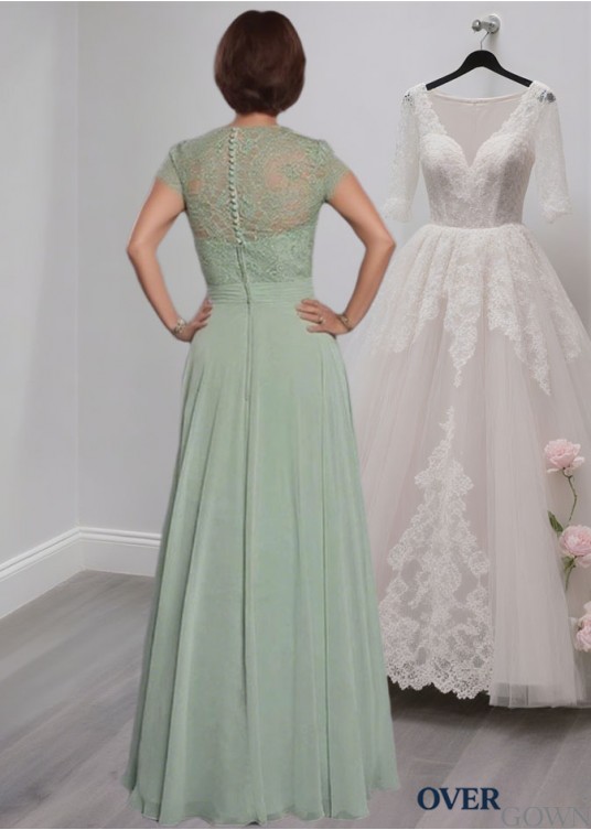 Elegant Scoop Neck Full-Length Lace Chiffon A-Line Mother of the Bride Dress