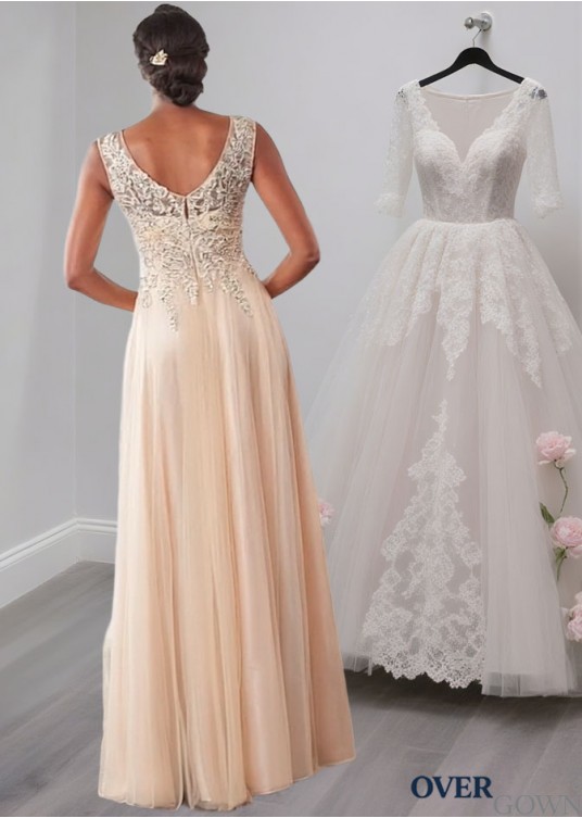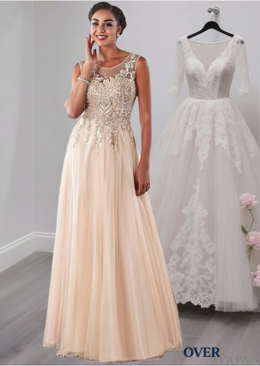 Tulle A-Line Wedding Party Dresses with Scoop Neck and Appliques