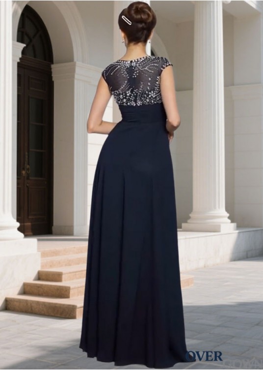 Prom Evening Dress – Scoop Neck Beaded Short Sleeve Floor Length Gown