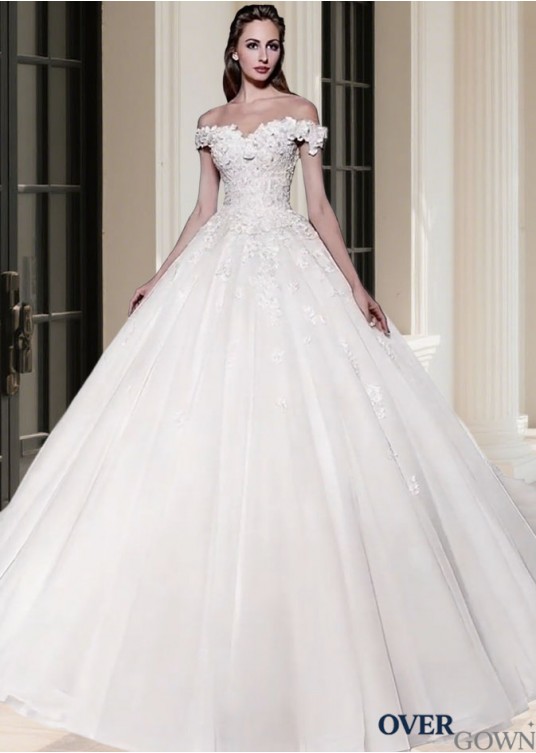 Short Sleeve Royal Train Ball Gown Bridal Gown