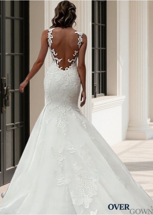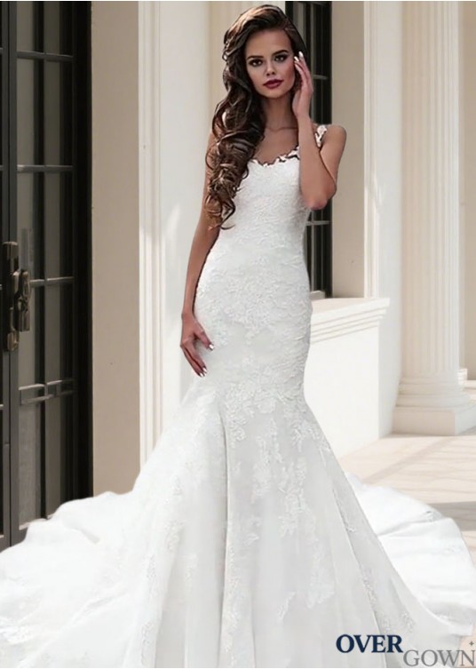 Sleeveless Chapel Train Beach Trumpet Bridal Gown