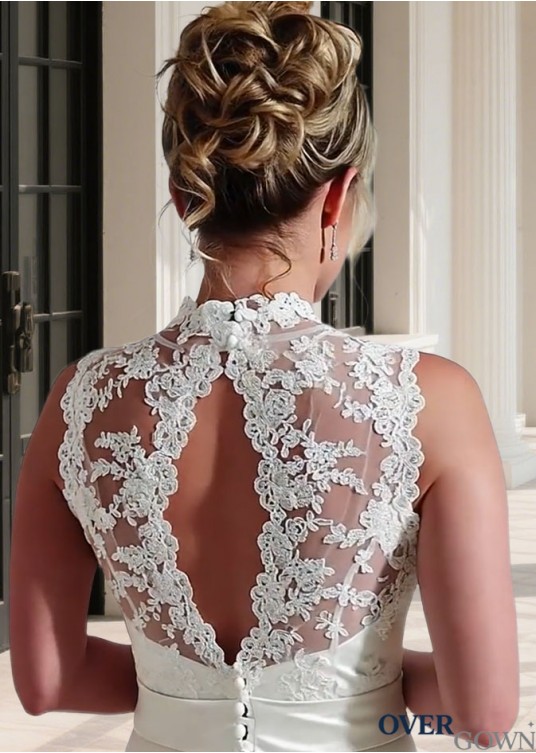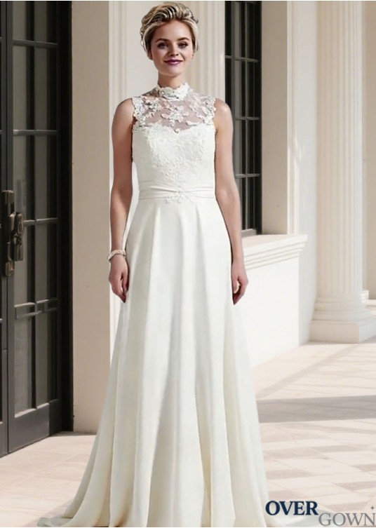 Sleeveless Lace Chiffon Bridal Gown Sweep Train