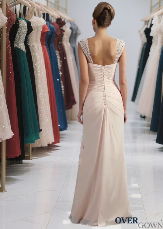 Elegant Chiffon Long Prom Evening Dress with Straps and Beaded Sheath Silhouette