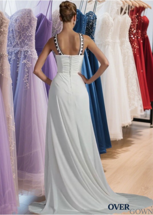 White Chiffon Scoop Neck A-Line Summer Beach Prom & Evening Dress
