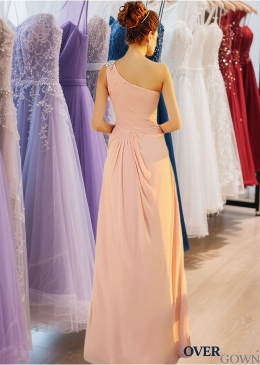 One Shoulder Chiffon Long Prom Dress – Prom Gowns with Beading