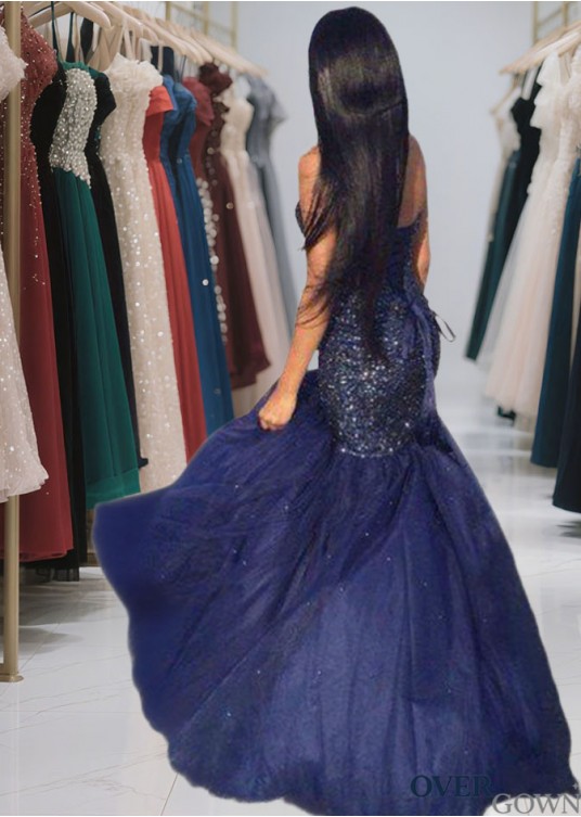 Sweetheart Beaded Mermaid Tulle Long Women Evening Dresses