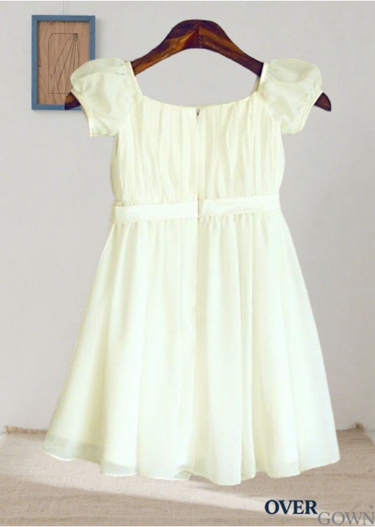 Square Neck Ruched Chiffon Flower Girl Dress Tea Length A-Line