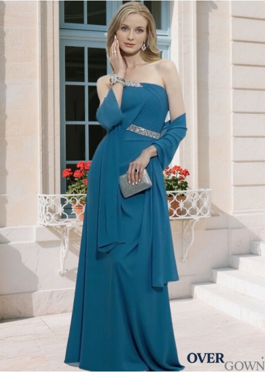 Strapless Chiffon Mother of the Bride Dress with Coat Full Length