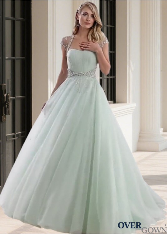 Strapless Tulle Ball Gown Wedding Dress with Short Sleeves and Beading