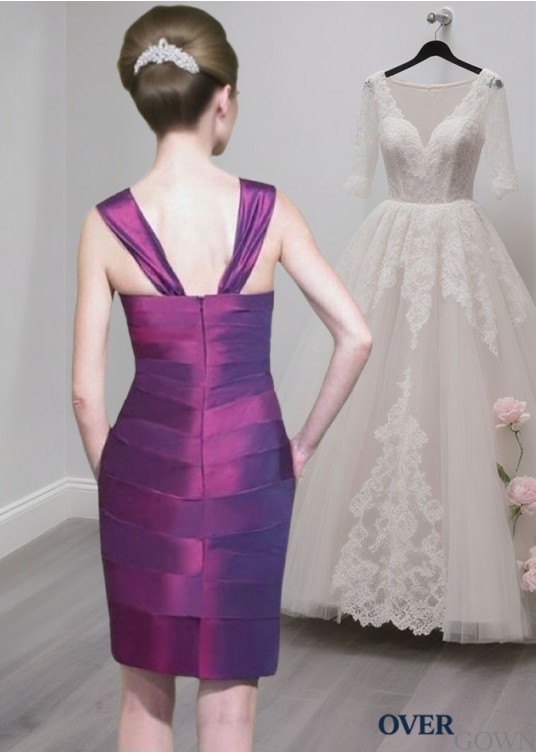 Elegant Taffeta Square Neck Mother of the Bride Dress with Jacket – Knee-Length Sheath Style