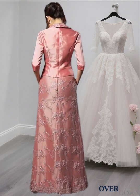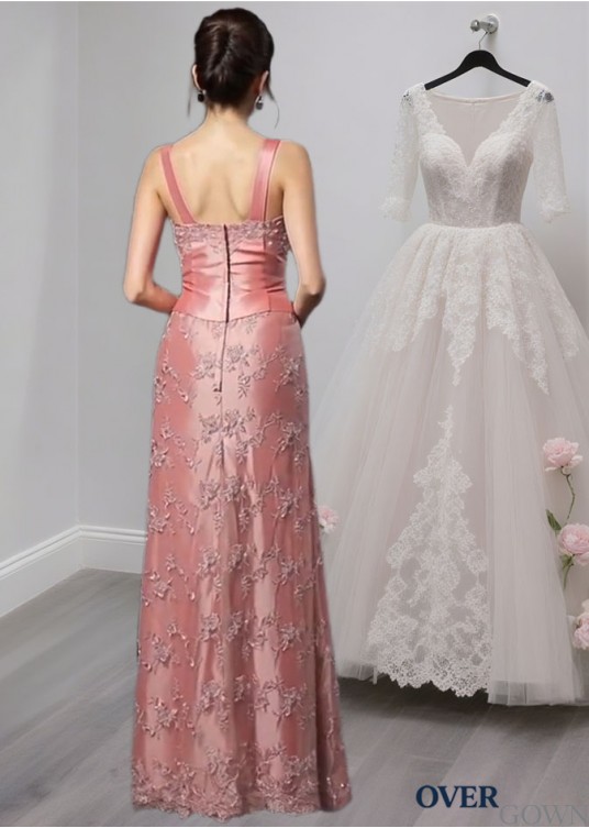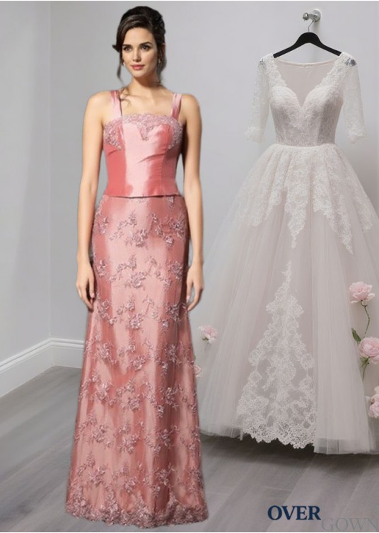 Taffeta A-Line Mother of the Bride Dress with Straps and Lace Embellishment