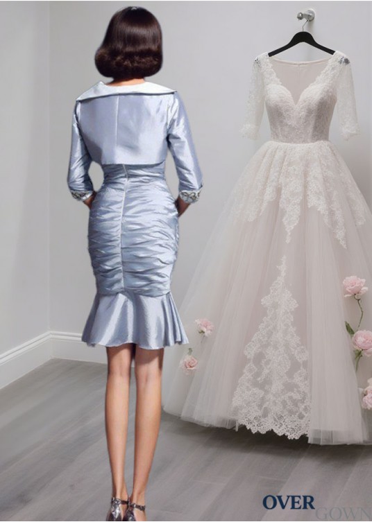 Short Satin Mother of the Bride Dresses with Jewel Neckline